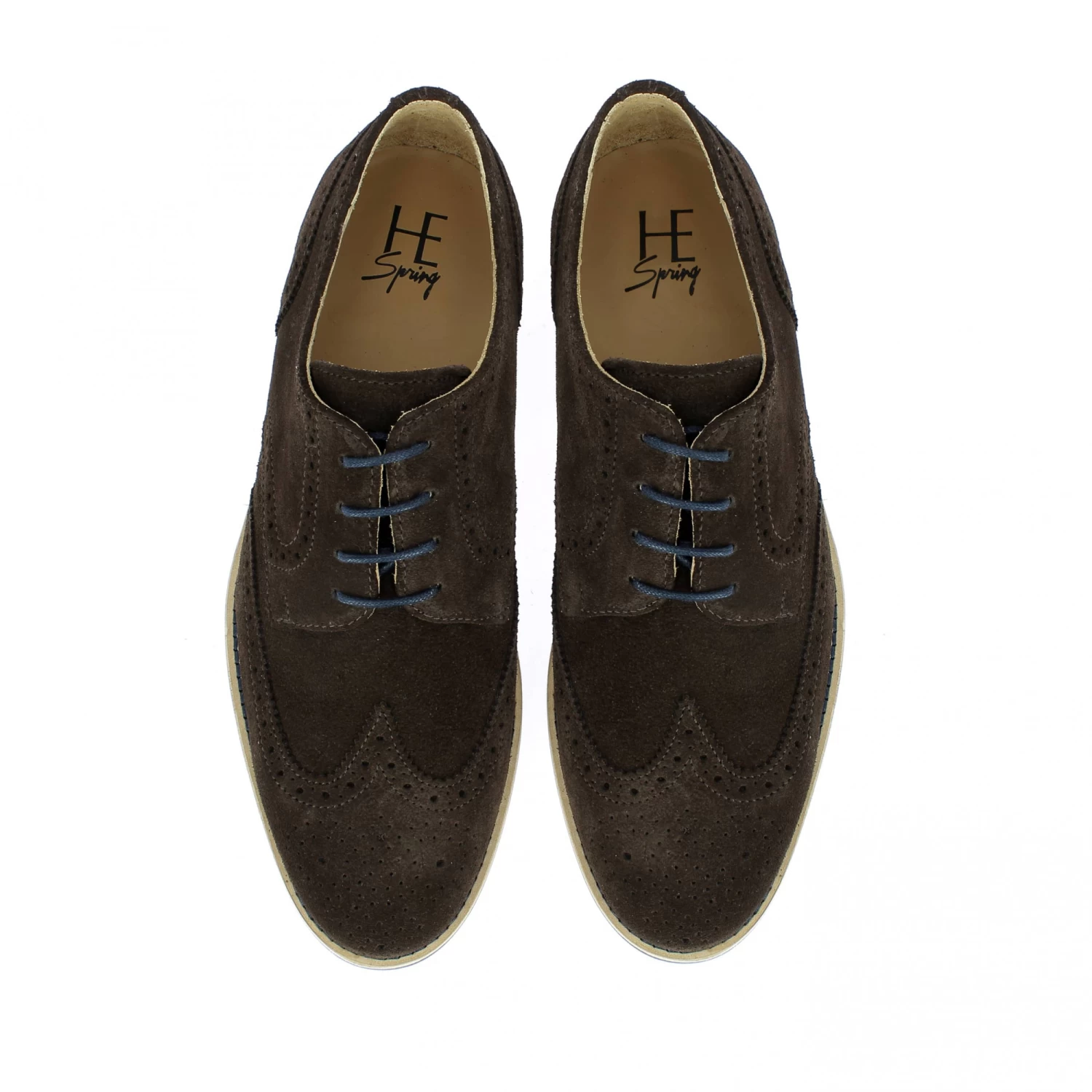 Richelieu pour homme en cuir velours chocolat semelle gomme
