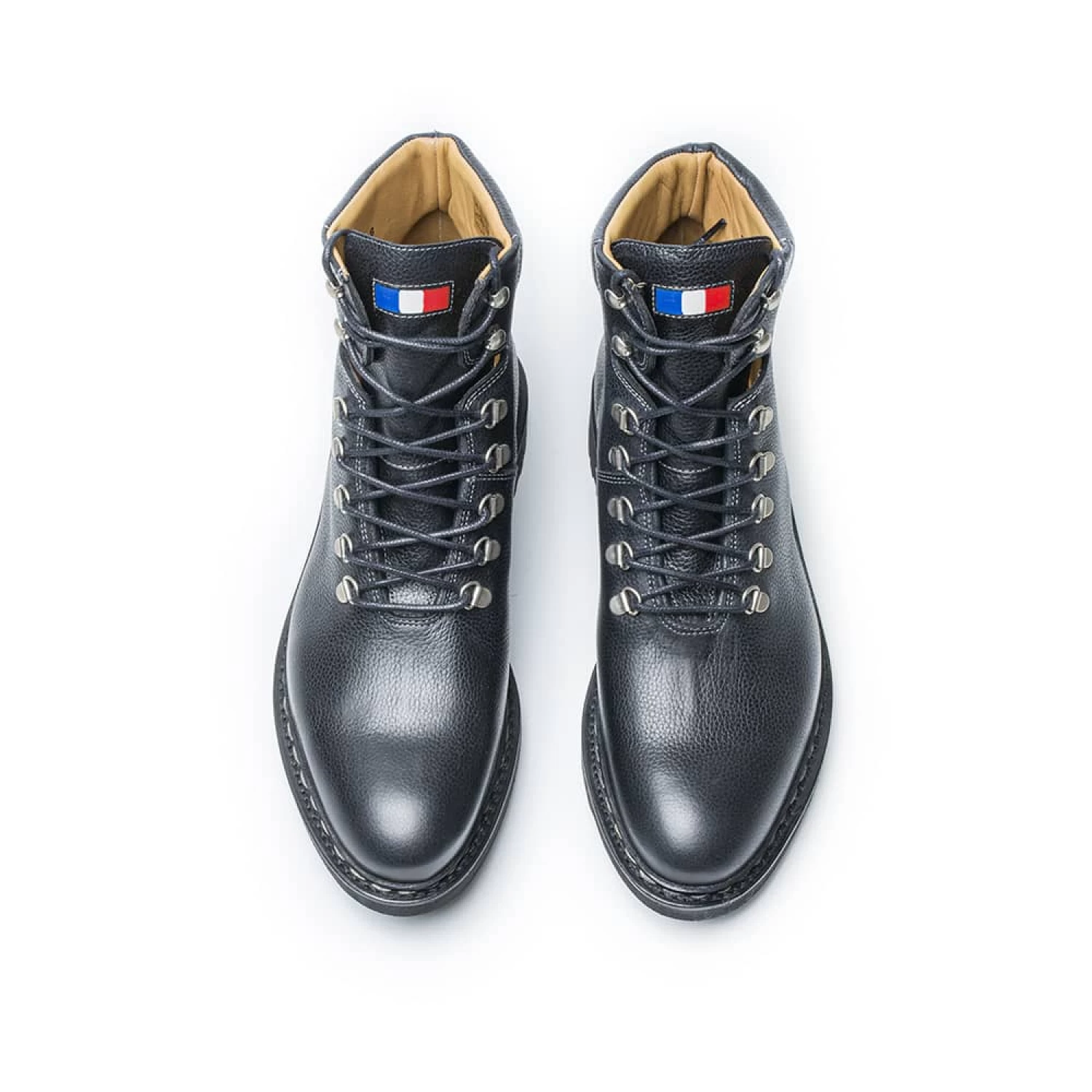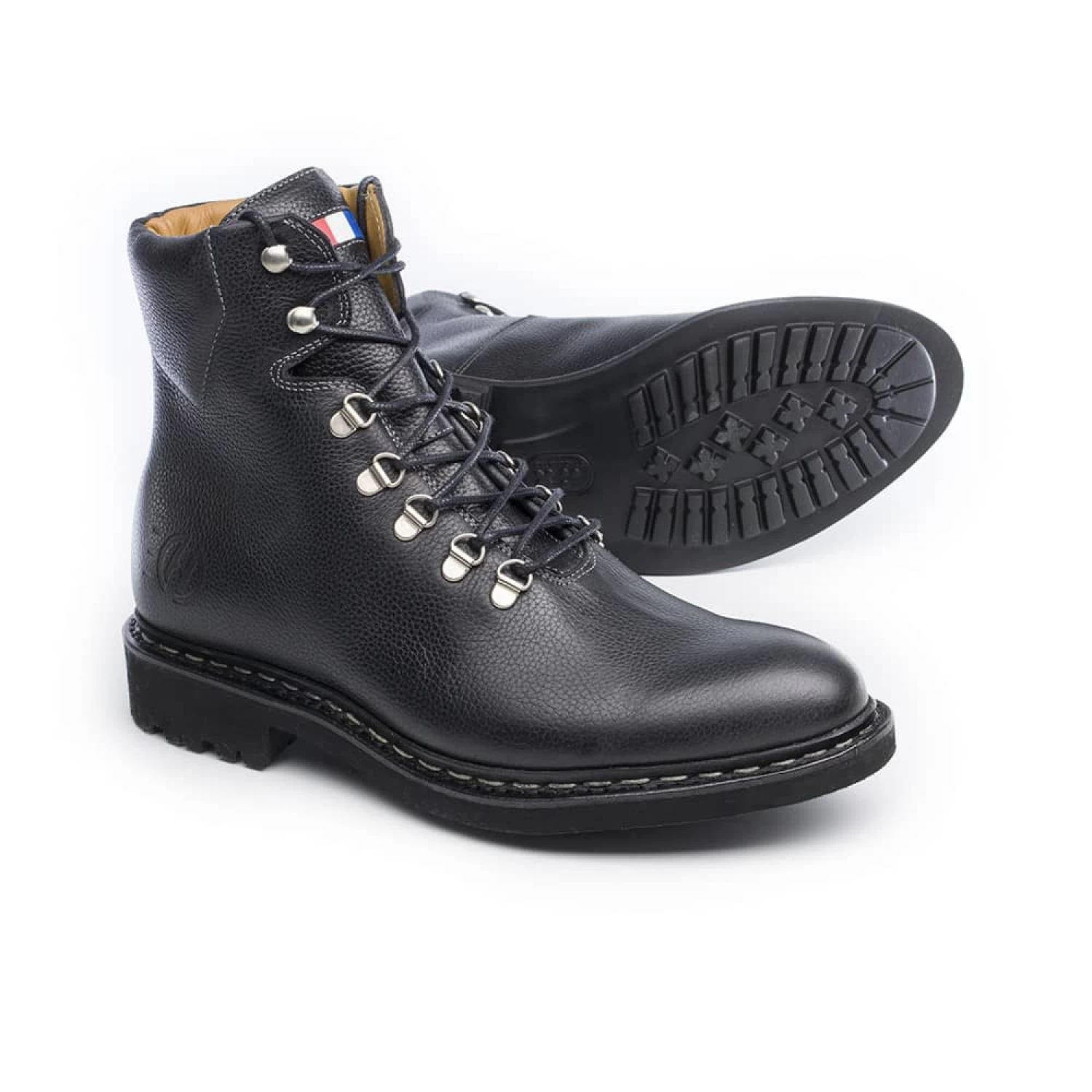 La partie fleur de la trépointe contre la partie fleur de la tige à l’intérieur du soulier avec la semelle intérieure, cette couture dite « première » n’apparaît pas. A cette étape, un garnissage en liège est ajouté, il assure étanchéité et confort en prenant l’empreinte du pied. La trépointe est cousue une seconde fois avec la semelle d’usure. Seule cette couture apparaît pour obtenir un look très urbain.