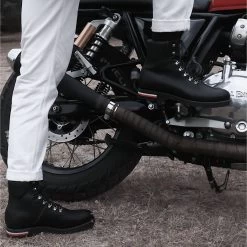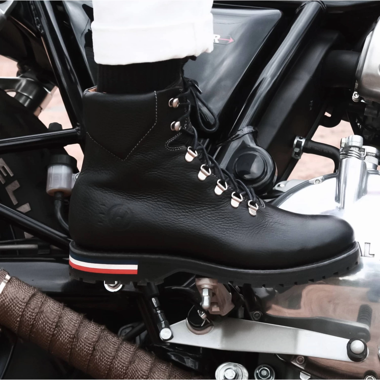 Nettoyer avec un chiffon humide ou une brosse. Appliquer le cirage à l’aide d’un chiffon en coton, de façon circulaire. Privilégier l’utilisation d’un cirage à la couleur de la tige. En cas d’utilisation en extérieur prolongée, appliquer la graisse végétale Maison Hardrige.