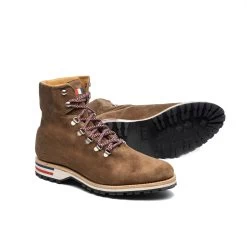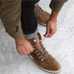 Le cuir hydro velours tanné en Allemagne est poncé côté chair, il est ensuite nourri à l’aide de graisse végétale assurant une résistance aux projections d’eau. Ce cuir est particulièrement résistant contrairement aux idées reçues.