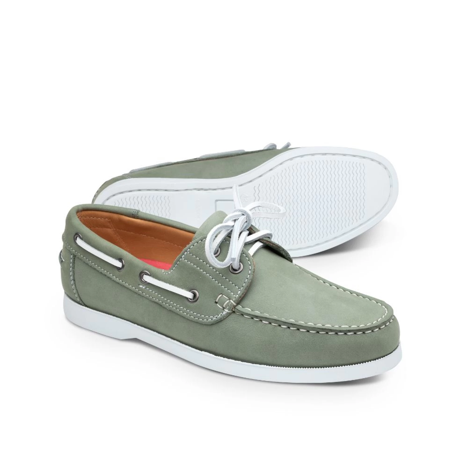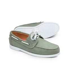 Bateau homme, Cuir nubuck kaki, Semelle gomme anti-dérapante.