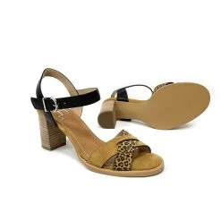 Sandale à talon pour femme, cuir mix mastic et beige, semelle cuir finition naturelle. Montée sur un talon de 6 cm, le pied est maintenu par deux lanières en cuir doublées. Chic et intemporelles nos sandales Django compléteront vos tenues bohème ou plus sophistiquées.