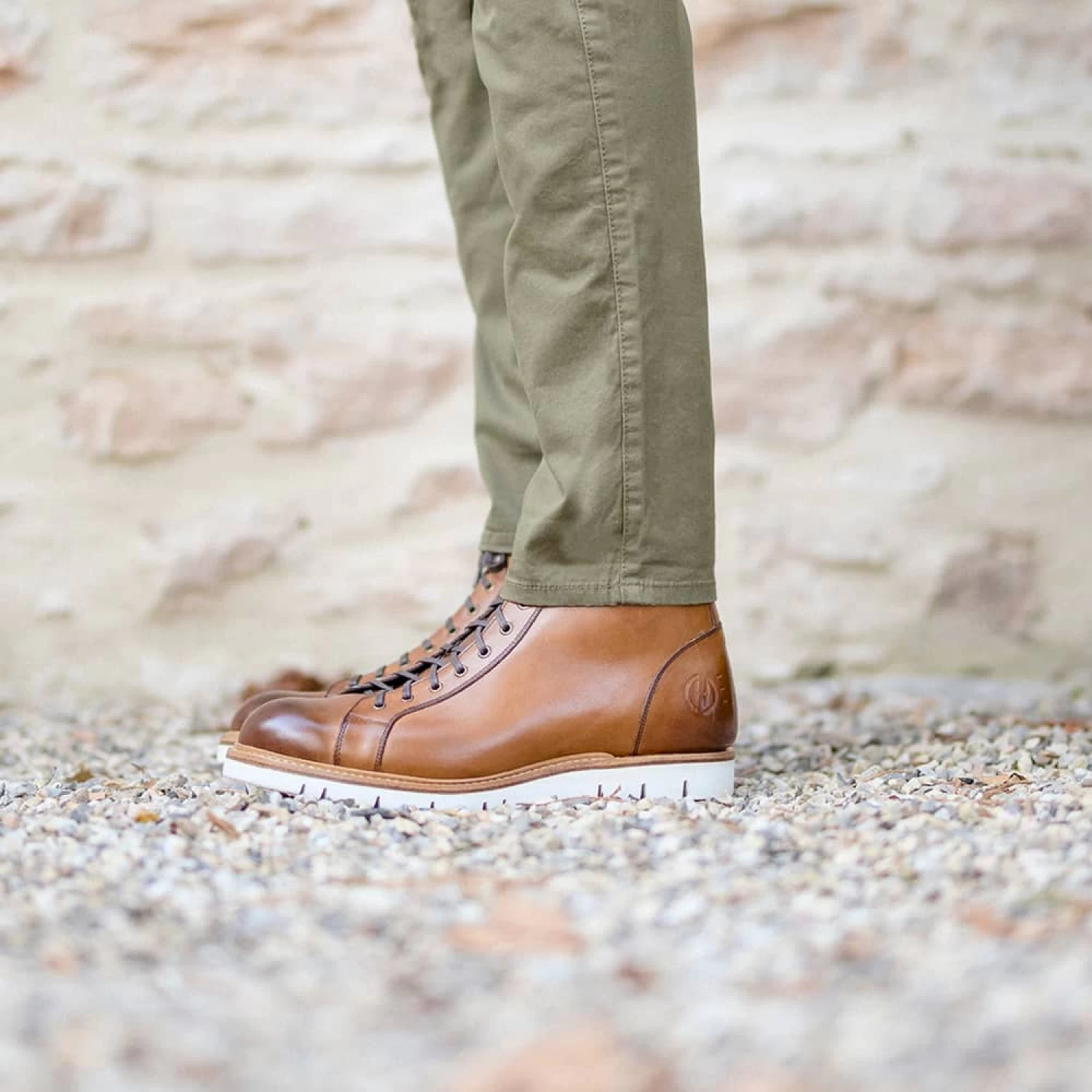 Le cuir Vegano des tanneries d’Annonay est un cuir de veau dont la couleur finale est réalisée en finition, une fois la tige montée sur forme. Ce cuir est parfait pour toutes les patines.