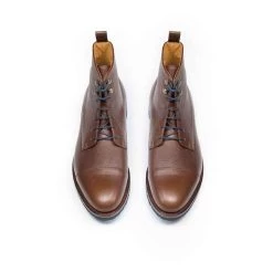 La partie fleur de la trépointe contre la partie fleur de la tige à l’intérieur du soulier avec la semelle intérieure, cette couture dite « première » n’apparaît pas. A cette étape, un garnissage en liège est ajouté, il assure étanchéité et confort en prenant l’empreinte du pied. La trépointe est cousue une seconde fois avec la semelle d’usure. Seule cette couture apparaît pour obtenir un look très urbain.
