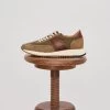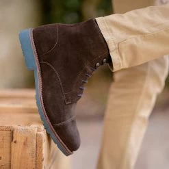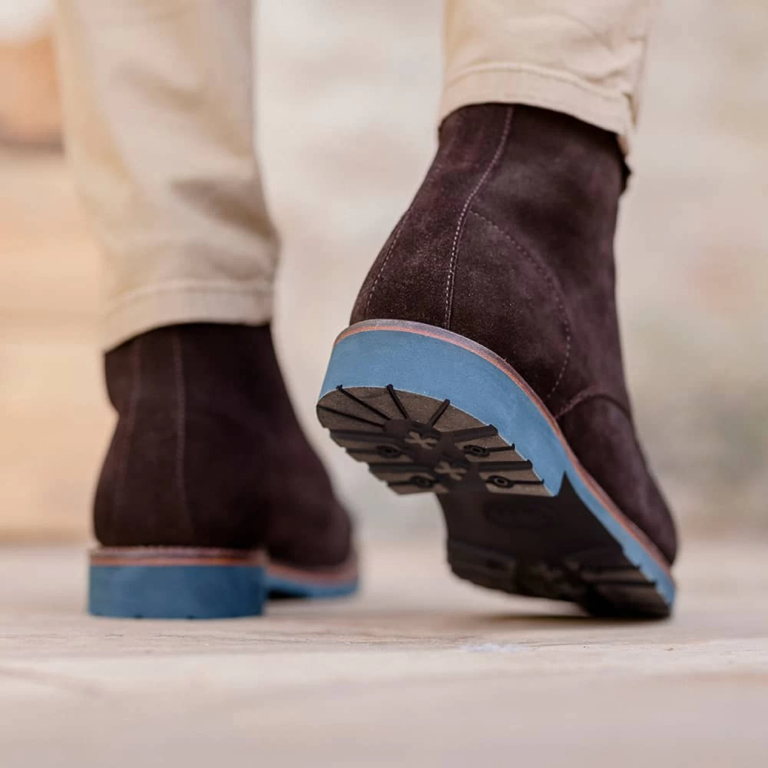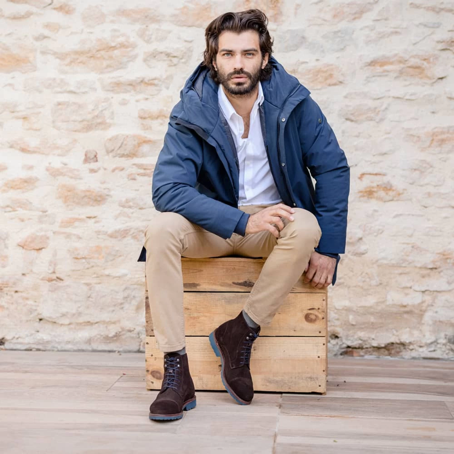 Le cuir hydro velours tanné en Allemagne est poncé côté chair, il est ensuite nourri à l’aide de graisse végétale assurant une résistance aux projections d’eau. Ce cuir est particulièrement résistant contrairement aux idées reçues.