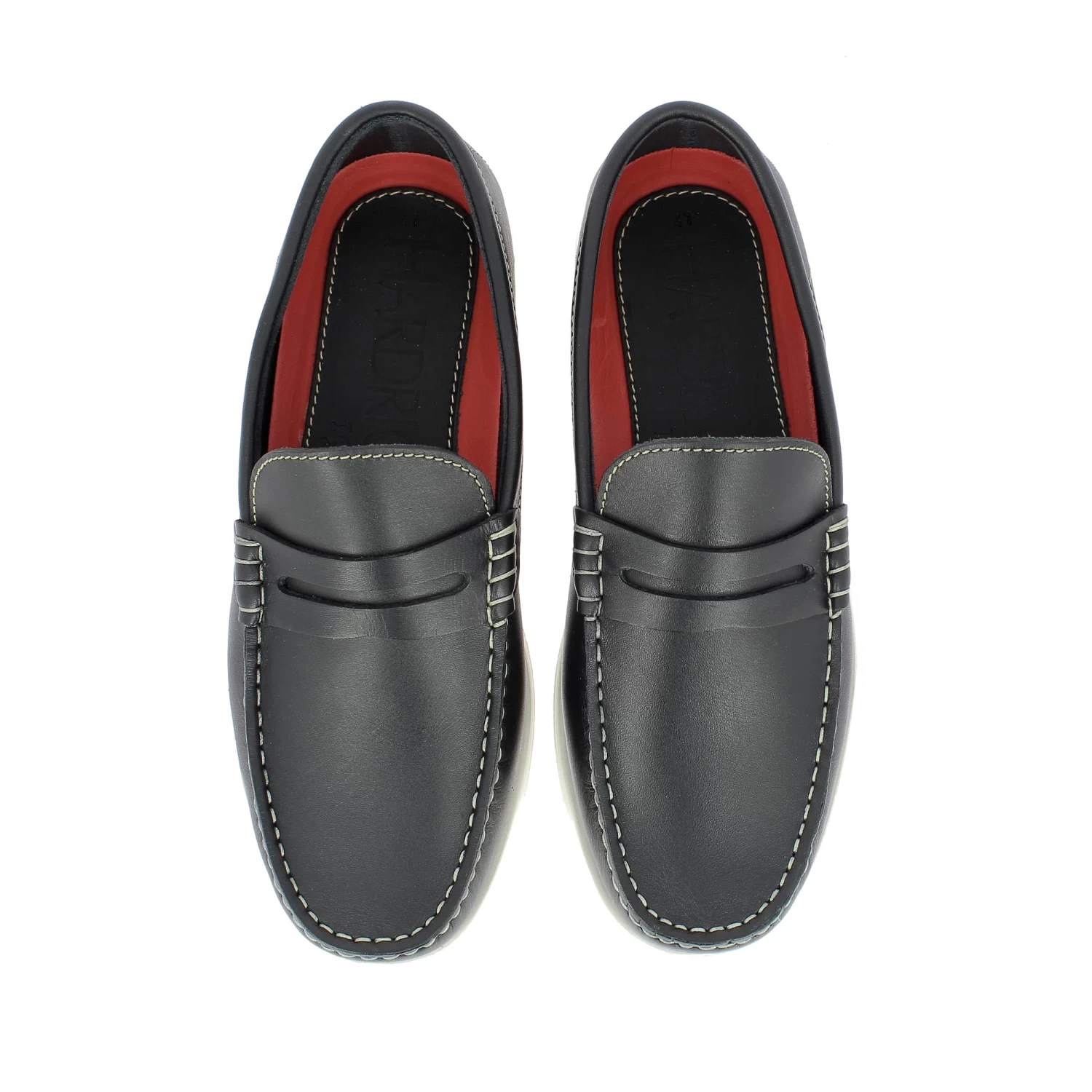 - La tige du Mocassin a la particularité d’être montée en forme de tube, son plateau est cousu à la main. L’ensemble est ensuite monté sur une forme en inox chauffée. Cette opération permet d’éliminer les plis apparus suite à la couture du plateau.