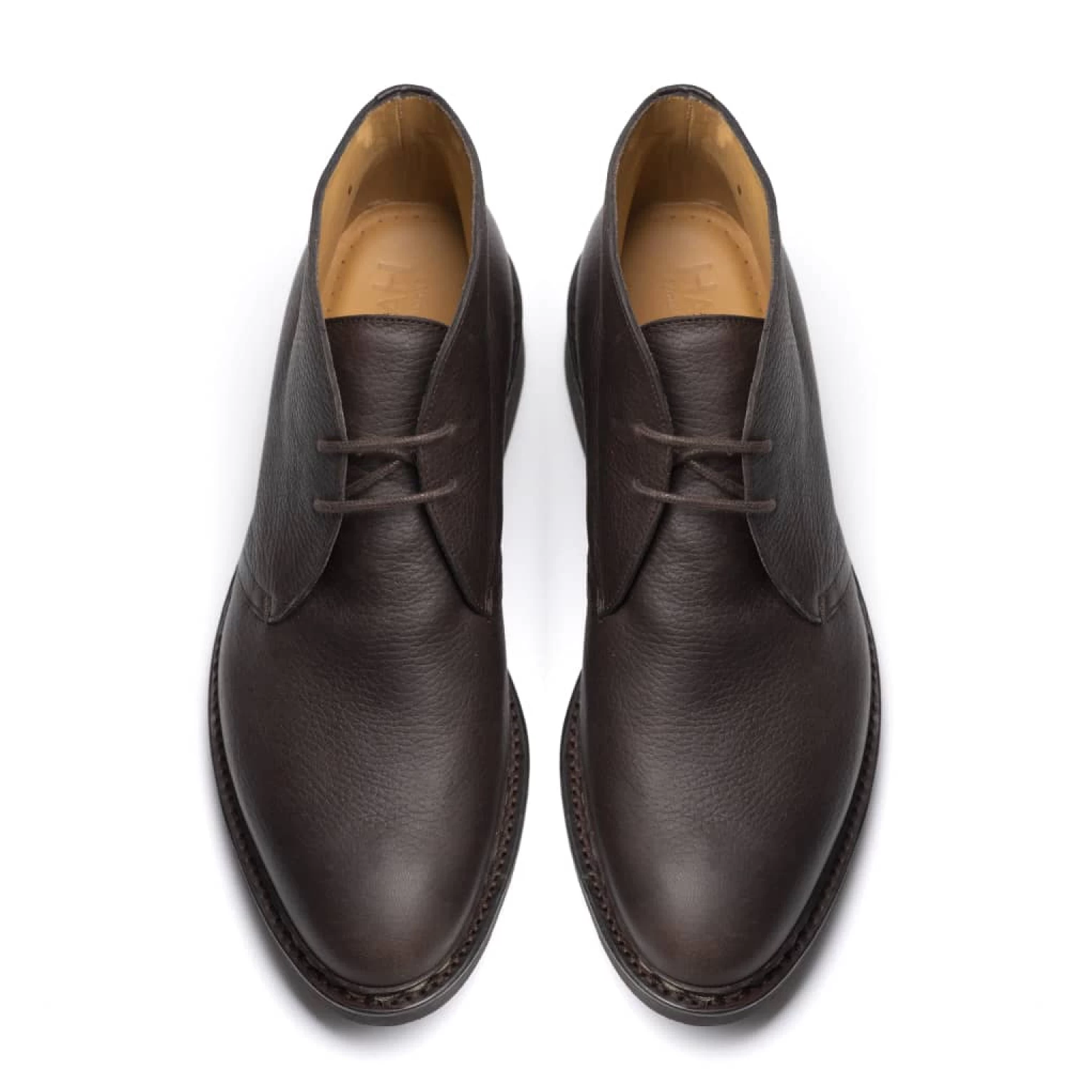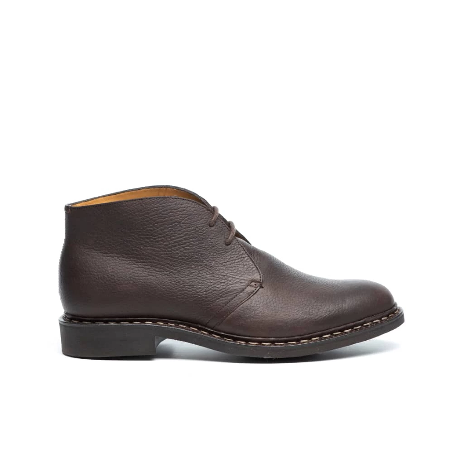 Nettoyer avec un chiffon humide ou une brosse. Appliquer le cirage à l’aide d’un chiffon en coton, de façon circulaire. Privilégier l’utilisation d’un cirage à la couleur de la tige. En cas d’utilisation en extérieur prolongée, appliquer la graisse végétale Maison Hardrige.