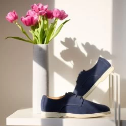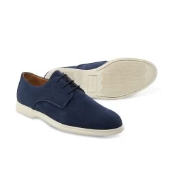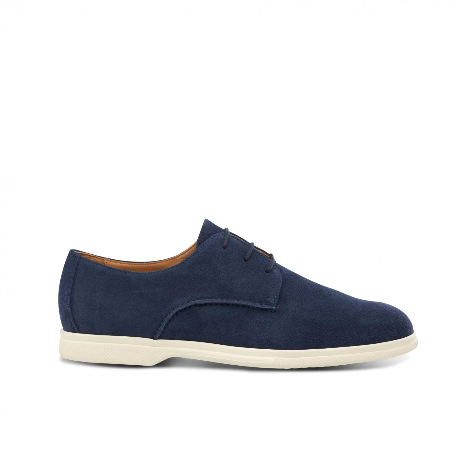 Derby pour homme à lacets, Cuir suédé Navy, Semelle en gomme blanche