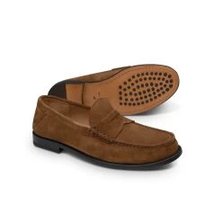- La tige du Mocassin a la particularité d’être montée en forme de tube, son plateau est cousu à la main. L’ensemble est ensuite monté sur une forme en inox chauffée. Cette opération permet d’éliminer les plis apparus suite à la couture du plateau.