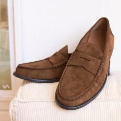 - La tige du Mocassin a la particularité d’être montée en forme de tube, son plateau est cousu à la main. L’ensemble est ensuite monté sur une forme en inox chauffée. Cette opération permet d’éliminer les plis apparus suite à la couture du plateau.
