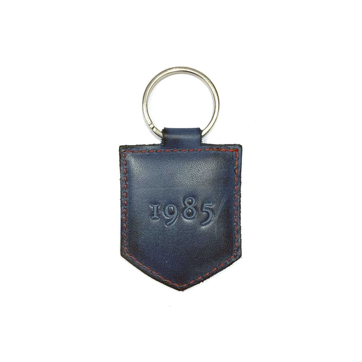 Porte Clés bleu en cuir lisse patiné Hardrige Vintage Sport 1985Le porte-clés Hardrige Vintage Sport 1985, est taillé dans un cuir lisse patiné à la main, il est marqué à chaud d’une inscription « Hardrige Vintage Sport » au verso et « 1985 » au dos. La couture apparente est de couleur contrastante rouge. Il est dessiné en France dans nos ateliers.