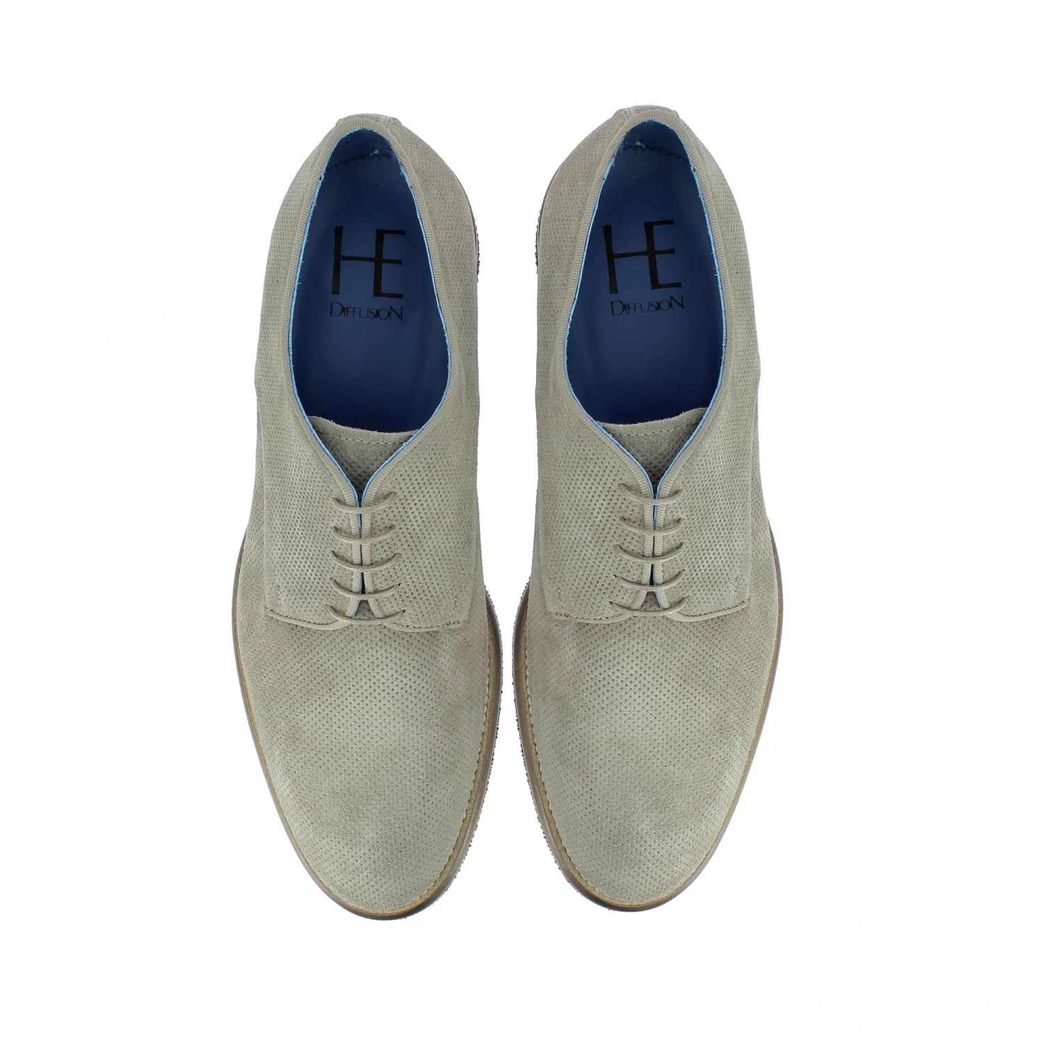 Richelieu pour homme en cuir velours Taupe semelle gomme