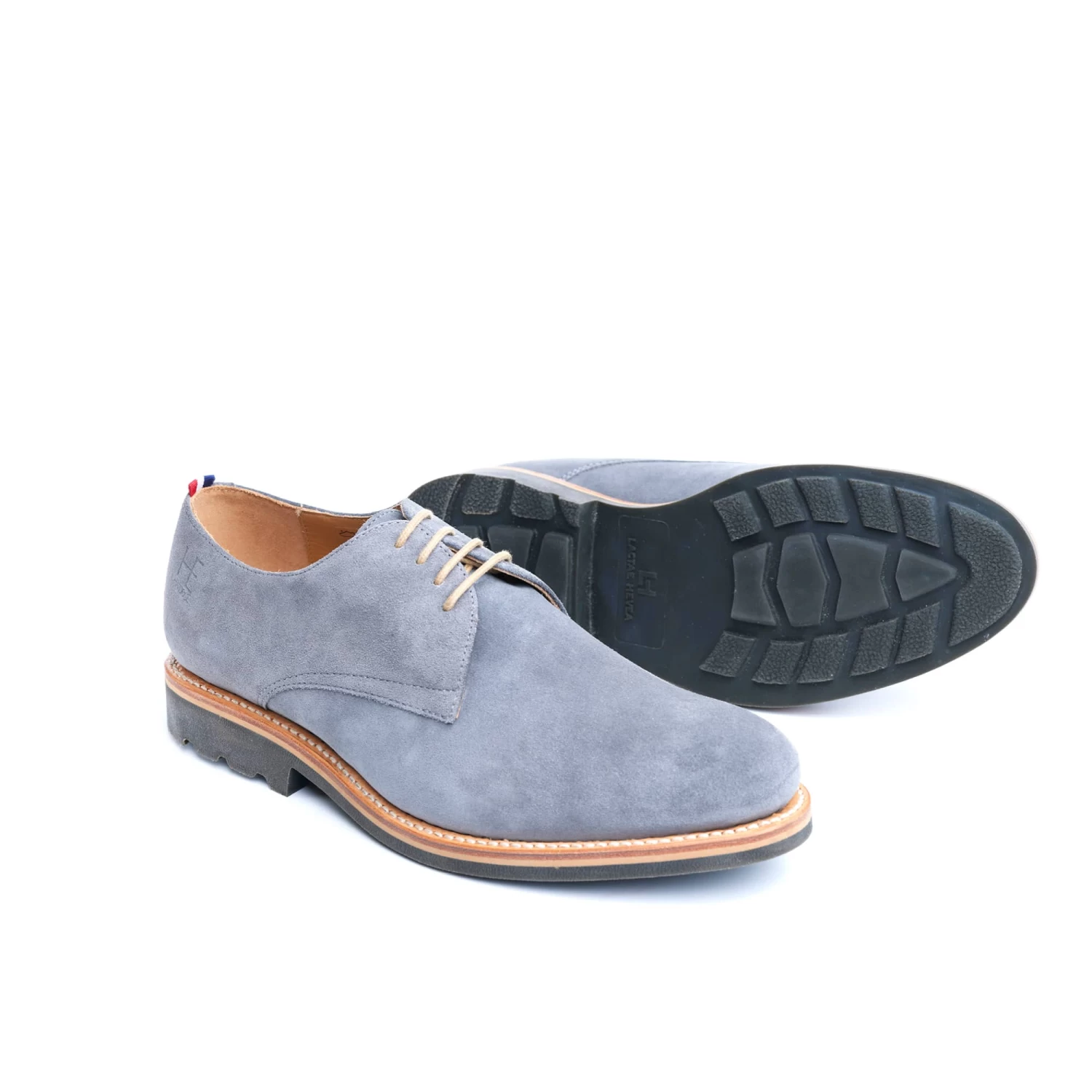 Le cuir hydro velours tanné en Allemagne est poncé côté chair, il est ensuite nourri à l’aide de graisse végétale assurant une résistance aux projections d’eau. Ce cuir est particulièrement résistant contrairement aux idées reçues.