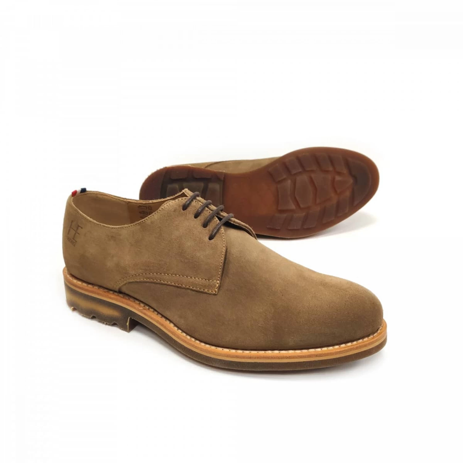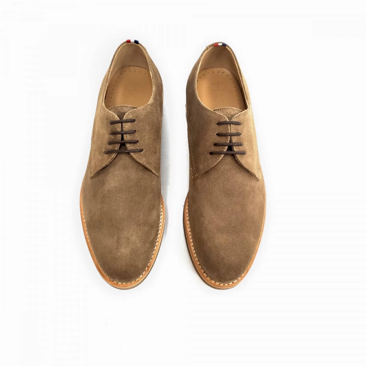 Le cuir hydro velours tanné en Allemagne est poncé côté chair, il est ensuite nourri à l’aide de graisse végétale assurant une résistance aux projections d’eau. Ce cuir est particulièrement résistant contrairement aux idées reçues.