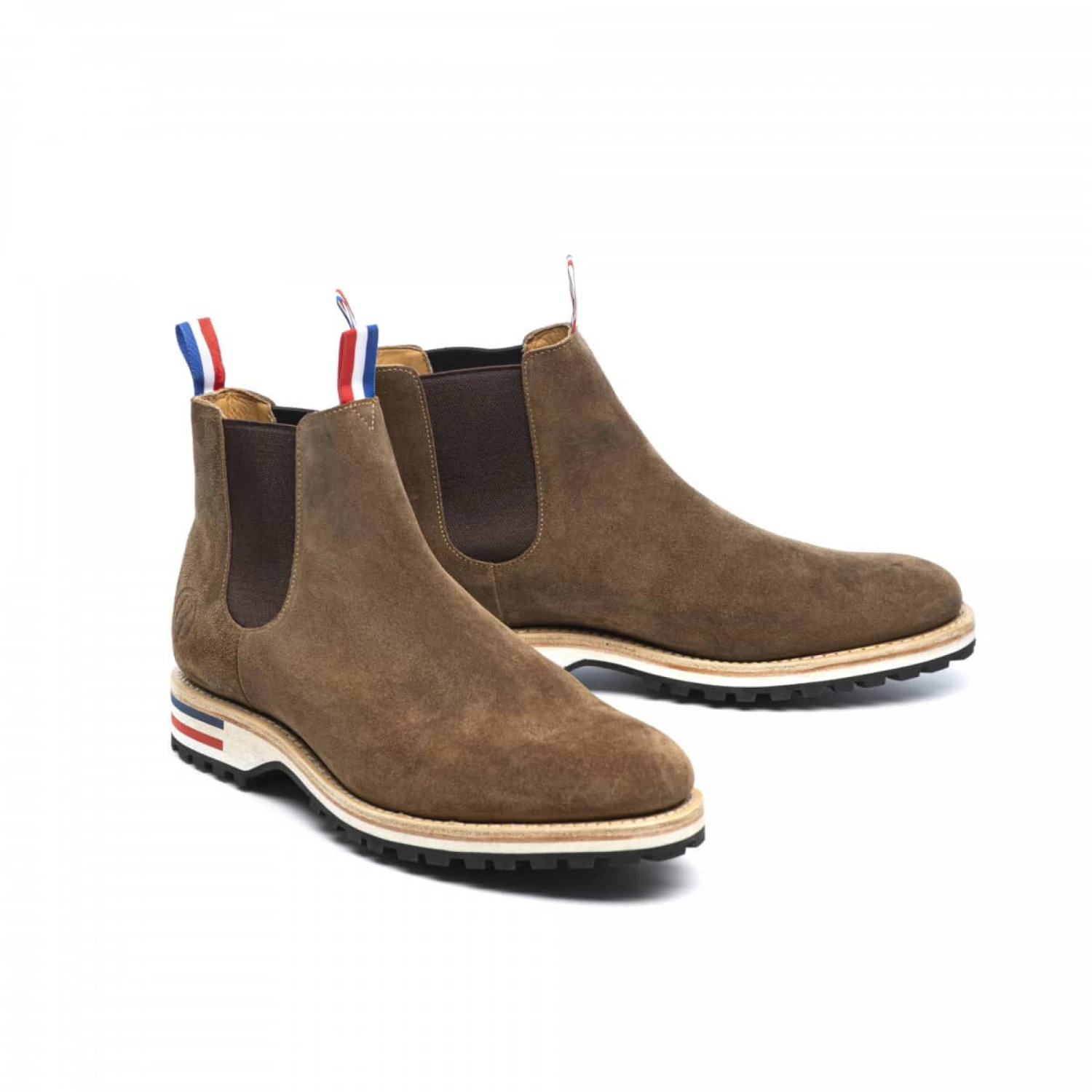 Le cuir hydro velours tanné en Allemagne est poncé côté chair, il est ensuite nourri à l’aide de graisse végétale assurant une résistance aux projections d’eau. Ce cuir est particulièrement résistant contrairement aux idées reçues.