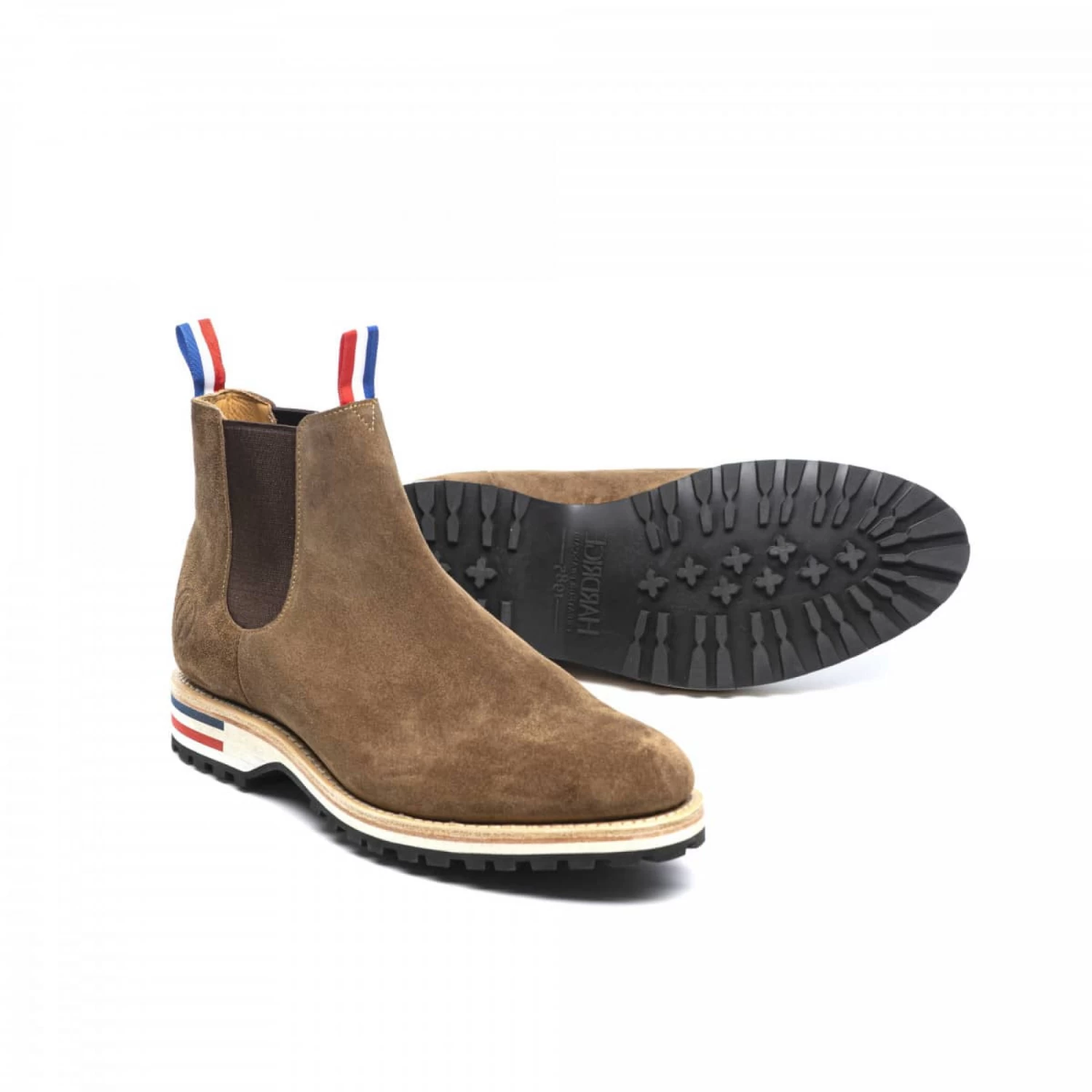 Semelle exclusive Maison Hardrige composée d’EVA pour l’amorti et le confort, accompagnée d’une couche de crampons en caoutchouc naturel pour le grip et la résistance à l’abrasion. Le meilleur des 2 mondes !