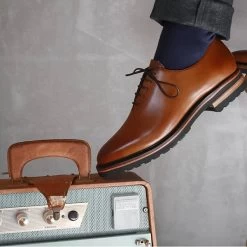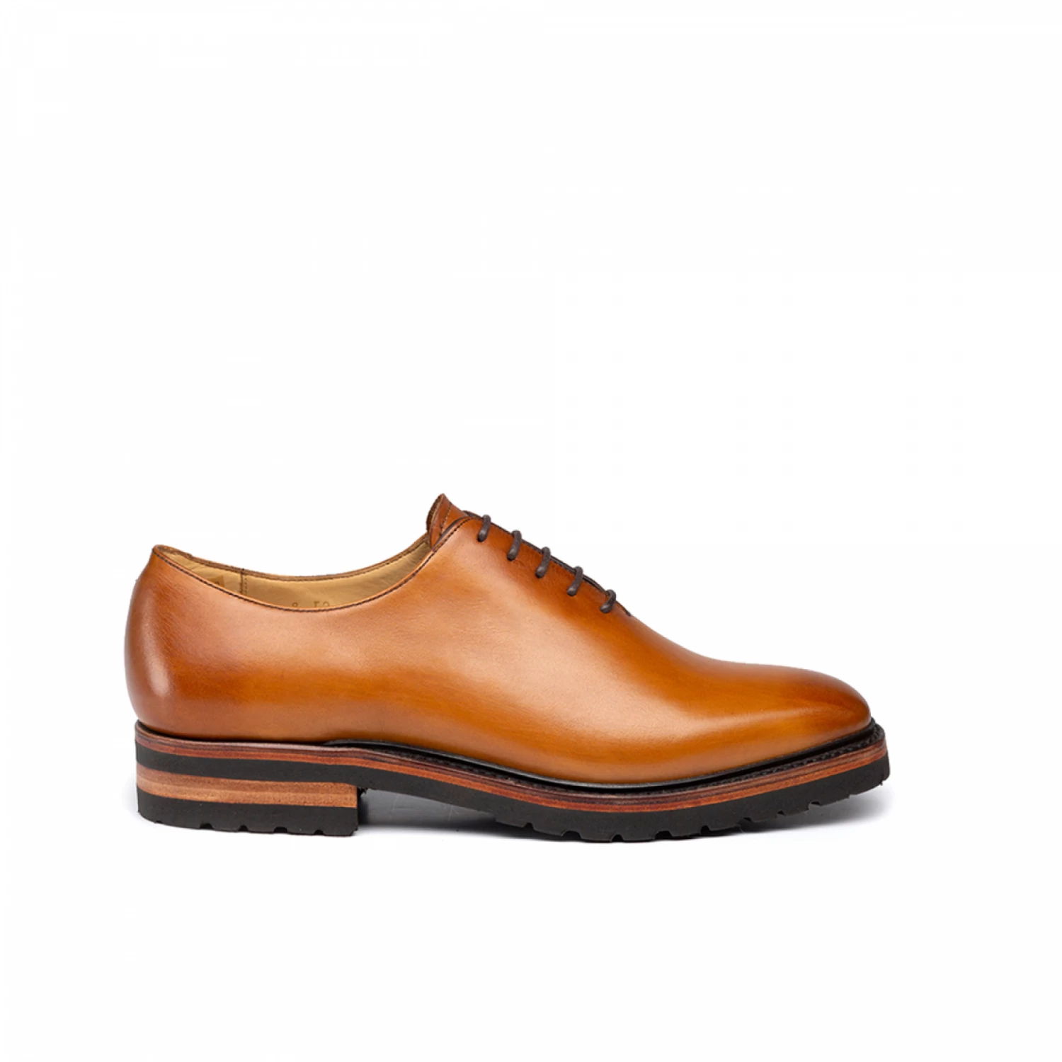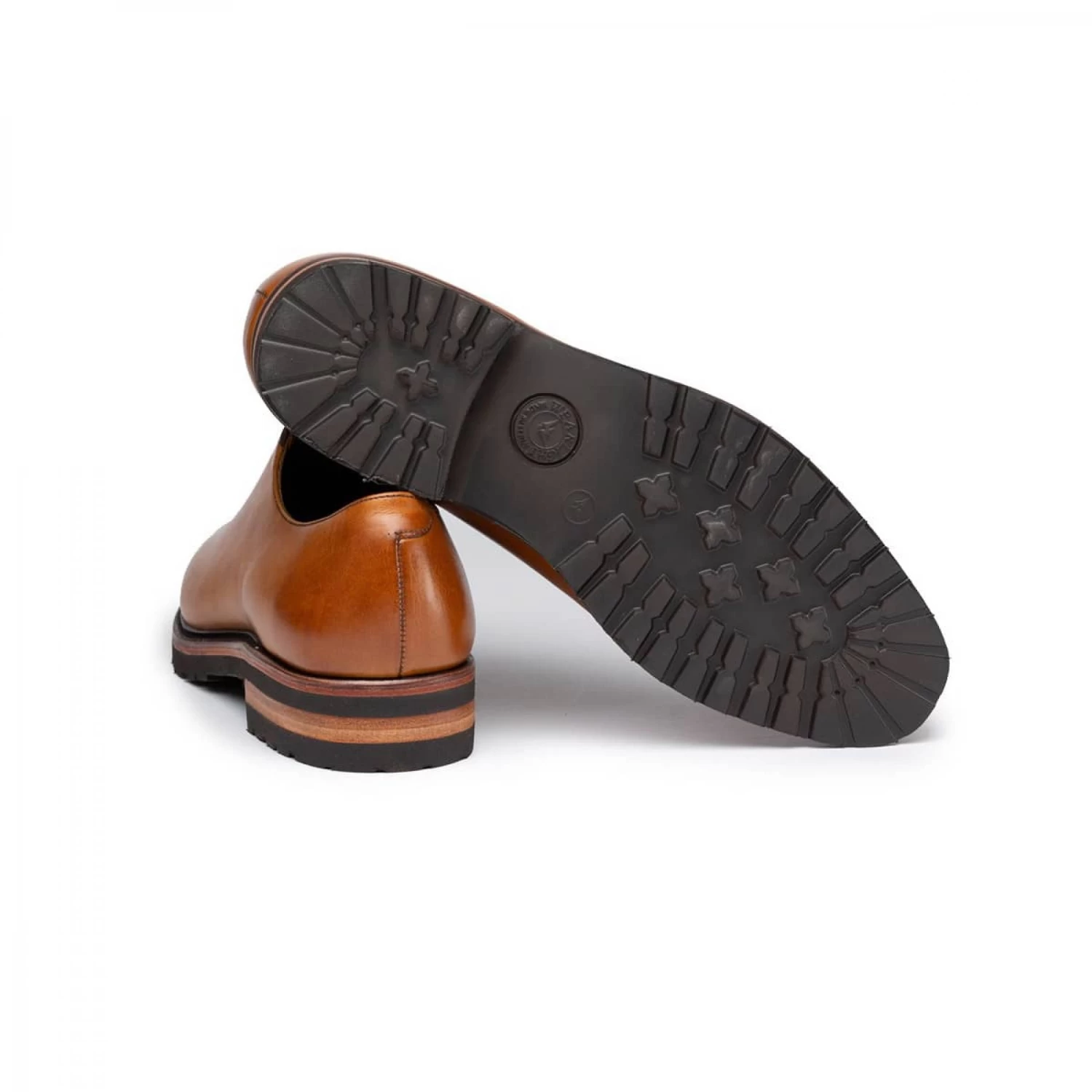 Le cuir Vegano des tanneries d’Annonay est un cuir de veau dont la couleur finale est réalisée en finition, une fois la tige montée sur forme. Ce cuir est parfait pour toutes les patines.